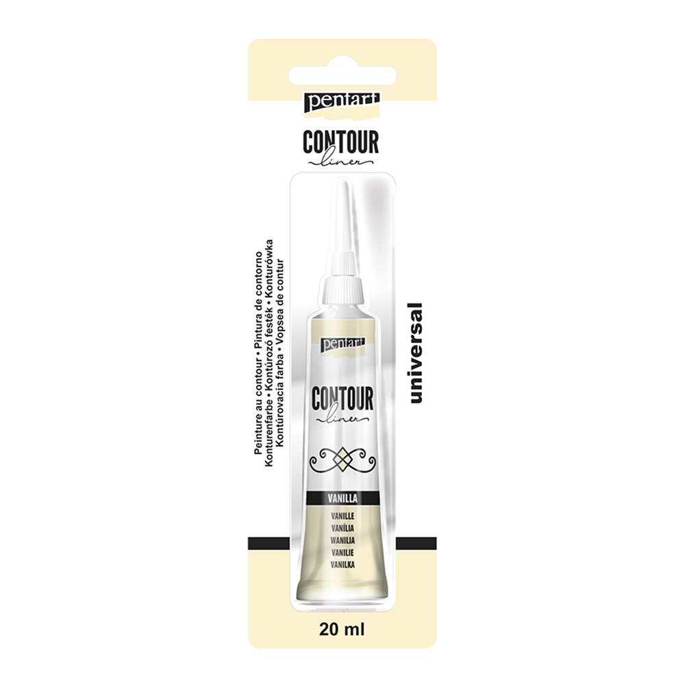 Univerzálna kontúrovacia farba je hustá farba na vodnej báze použiteľná na ľubovolný povrch. Určená na kraeslenie línií a obrysov, na zvýraznenie objektov a ich detailov, alebo na tvorbu plastických elementov.