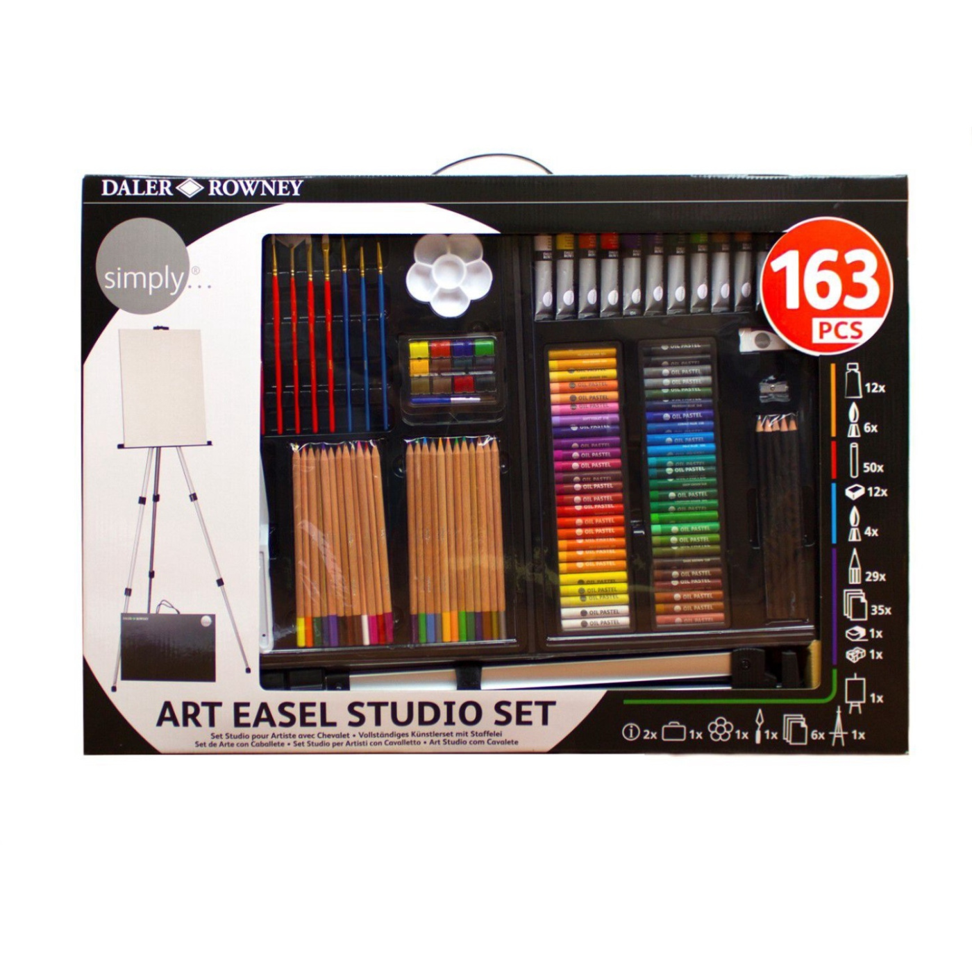 Veľká umelecká sada 163 ks vrátane hliníkového maliarskeho stojanu. Sada obsahuje sortiment pre všetky umelecké techniky - všetko zabalené v čiernej prenosnej taške.