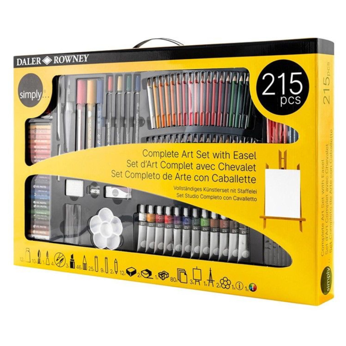 Umelecký set Daler-Rowney s plátnom a stojanom – 215 ks Komplexná výtvarná súprava, ktorá obsahuje všetko potrebné na rozvoj kreativity a umeleckých zručností.... celý popis
