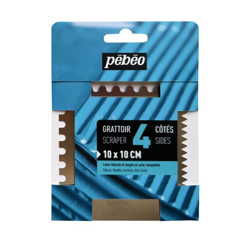 Kovová špachtla slúži na tvorenie štruktúr alebo zahladzovanie povrchu. Viete ju využiť s rôznymi štrukturovacími pastami alebo inými produktmi tuhších konzistencií na plátno, drevo či iné povrchy. Špachtla sa skladá z štyroch rôzne využiteľných strán, z ktorých Vám každá vytvorí iný efekt.
