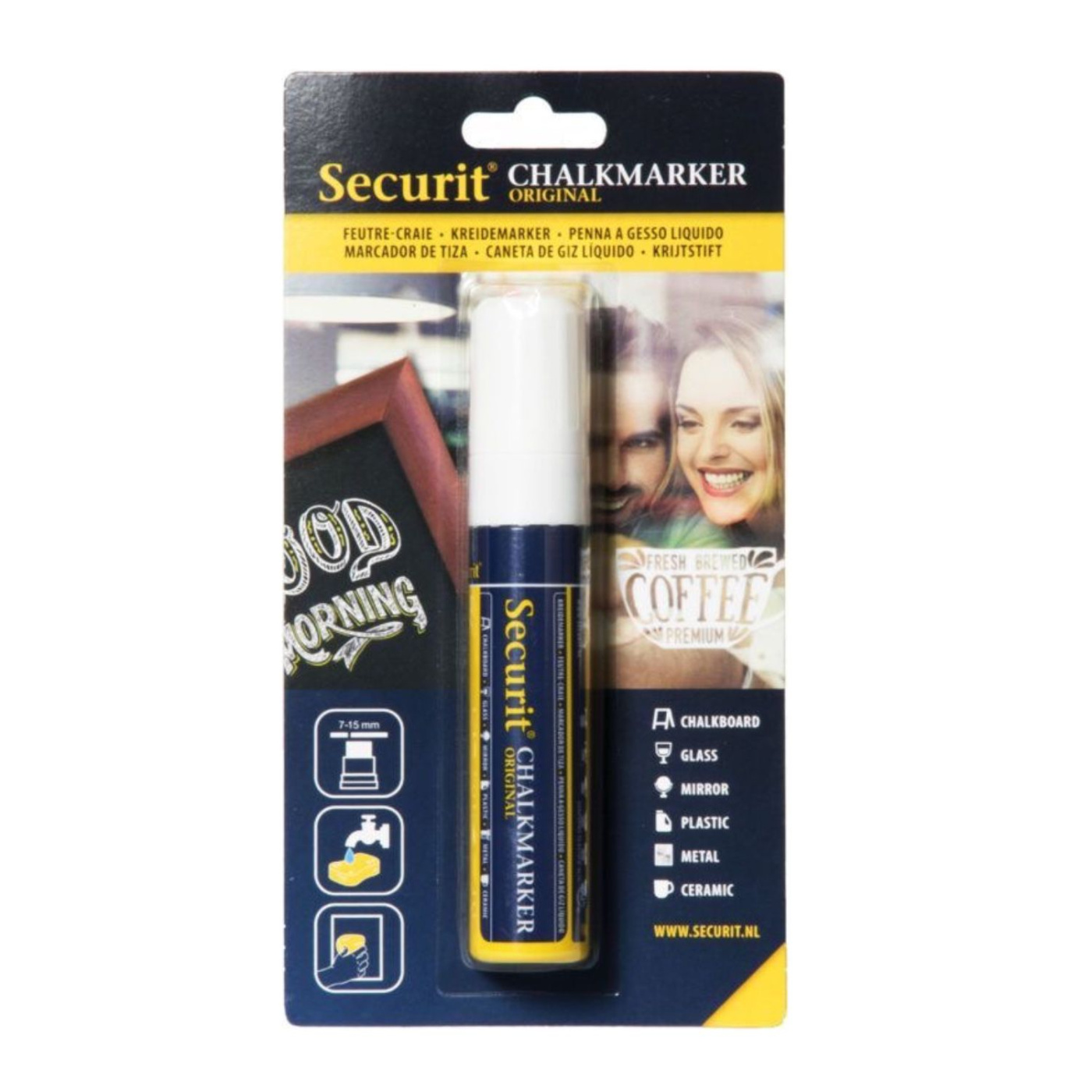 Kriedová fixka v blistri, Securit, hrot 7-15 mm, biela