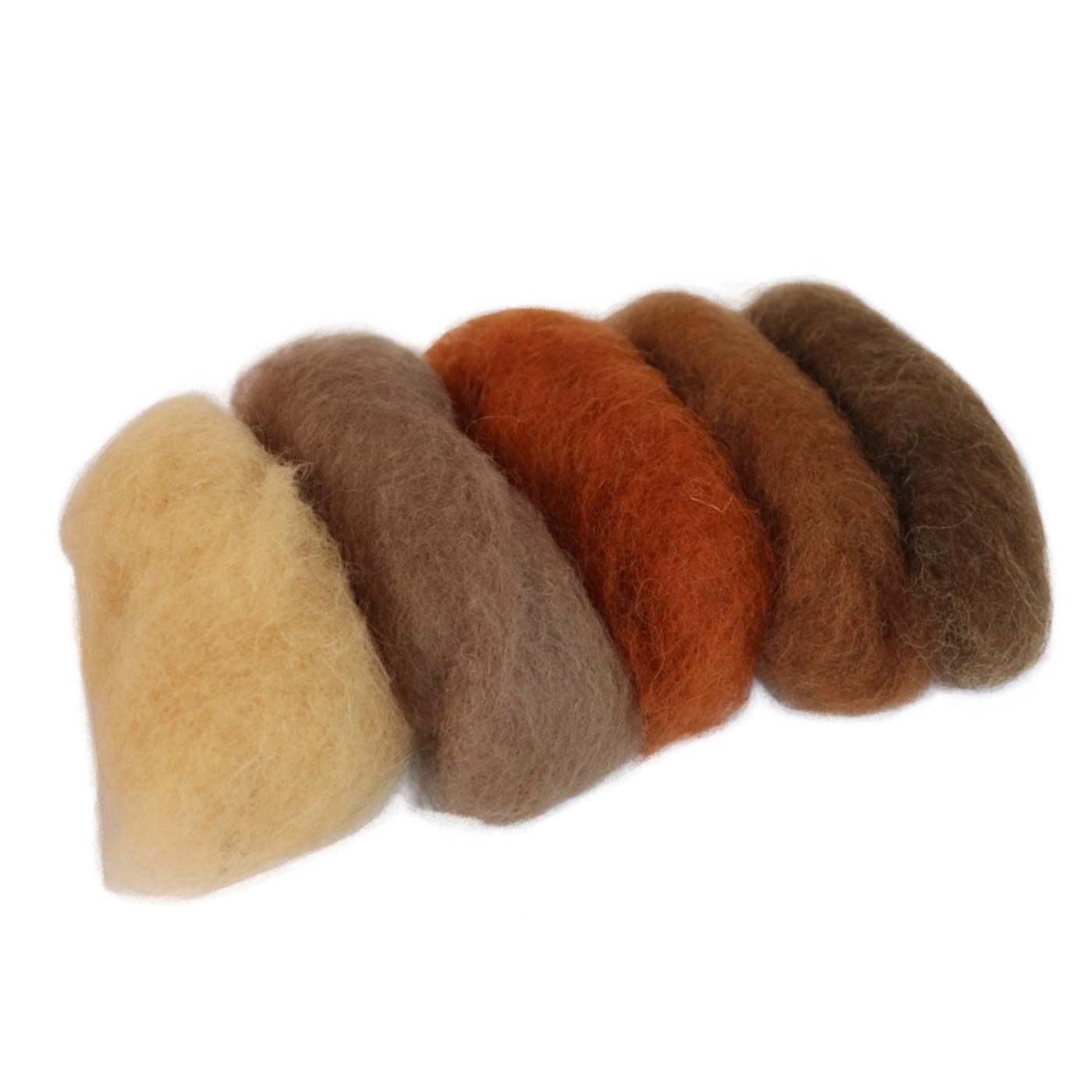 Ovčie rúno na plstenie, mykané, 20 g, MIX 5 odtieňov hnedých farieb