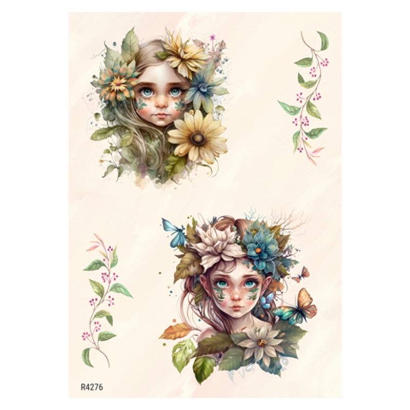 Ryžový papier, A4, kvetinové víly, žlté pozadie