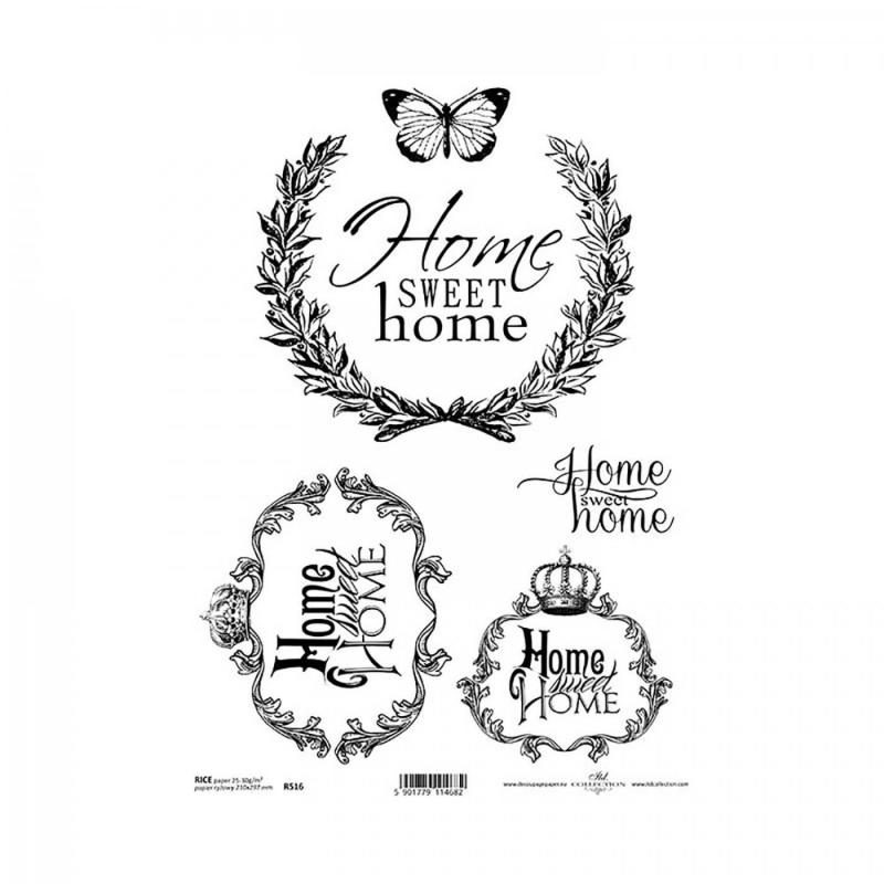 Ryžový papier na decoupage, A4, Home sweet home BW