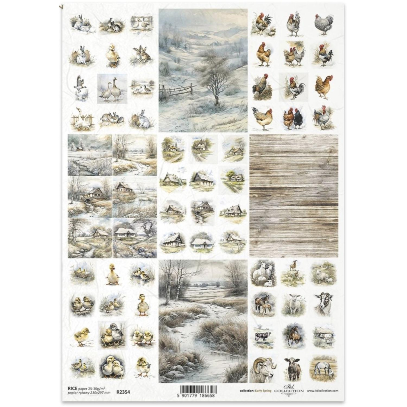 Ryžový papier na decoupage, A4, motív Vidiek