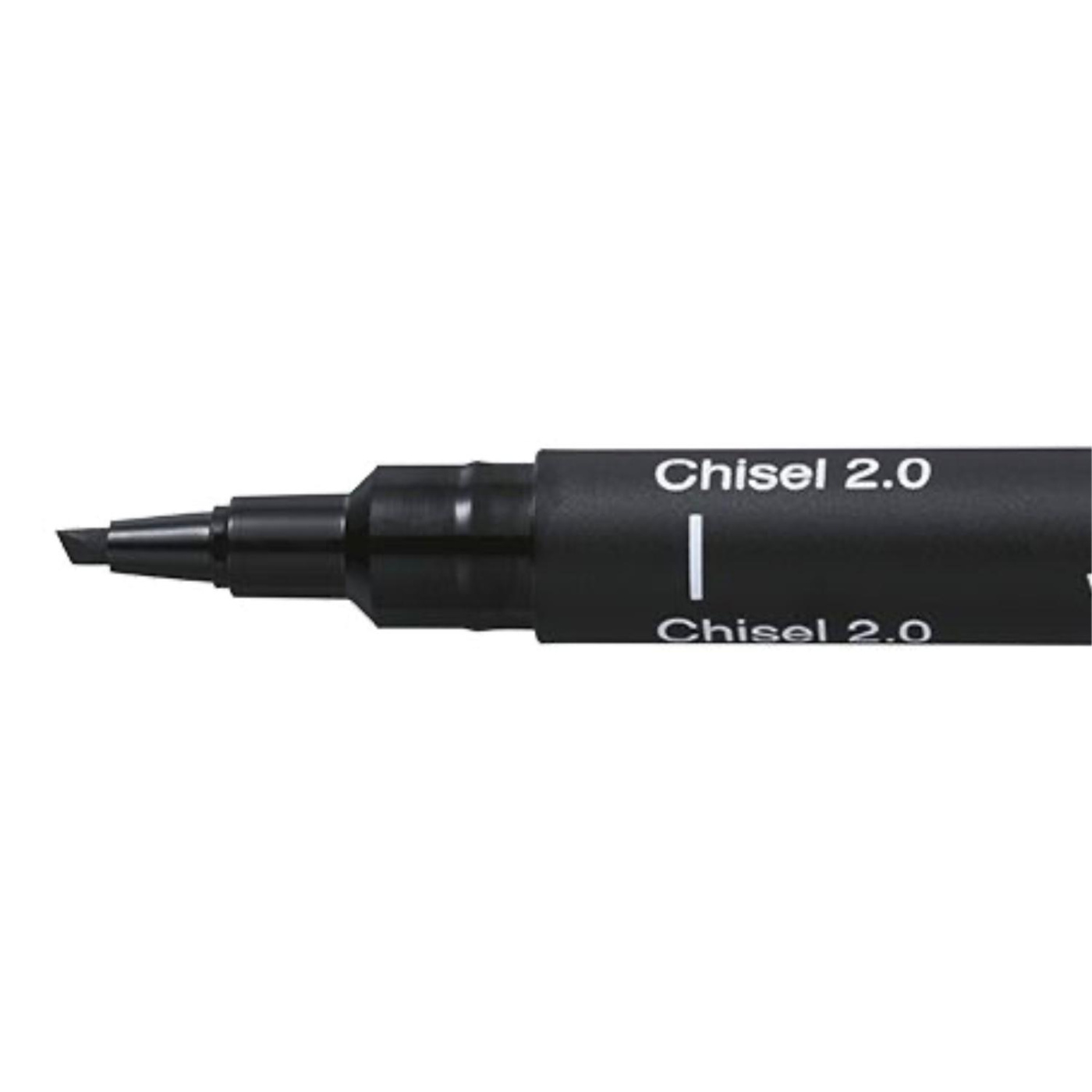 • pevný klinový hrot vytvára dva typy stopy (hrubšiu a tenšiu) v závislosti od náklonu hrotu pri písaní.
