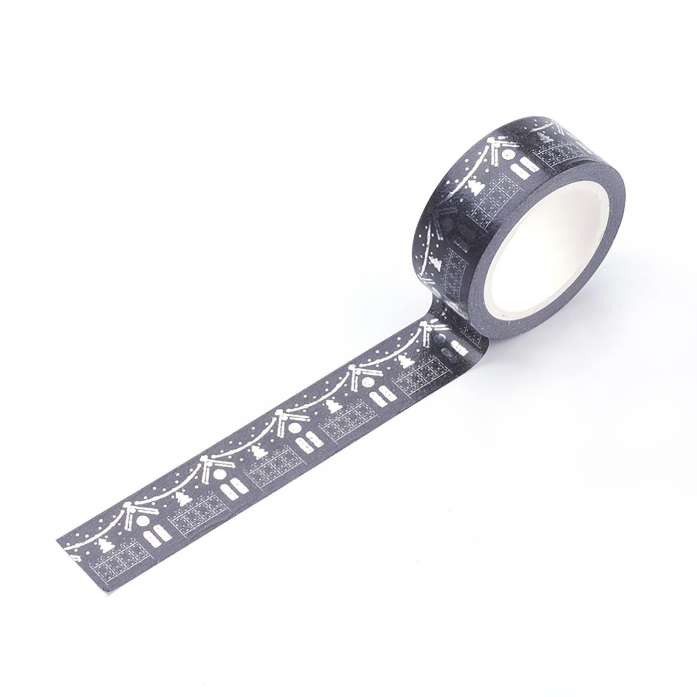 Washi páska, domčeky strieb, 15 mm, 5 m na rolke