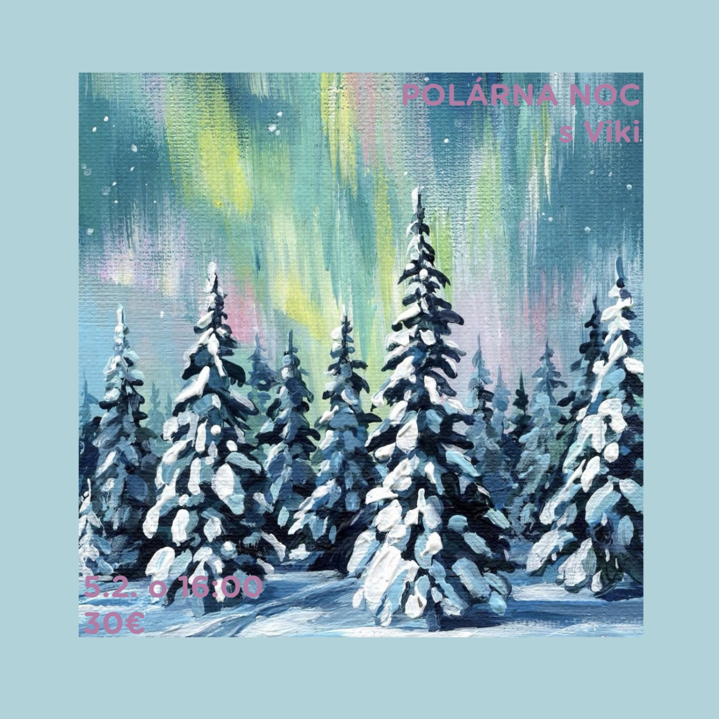 Workshop je kreatívny kurz na ktorom sa naučíme ako namaľovať technikou olejomaľby motív polárnej noci. Kurzom nás prevedie lektorka Viktória Švajlenková.